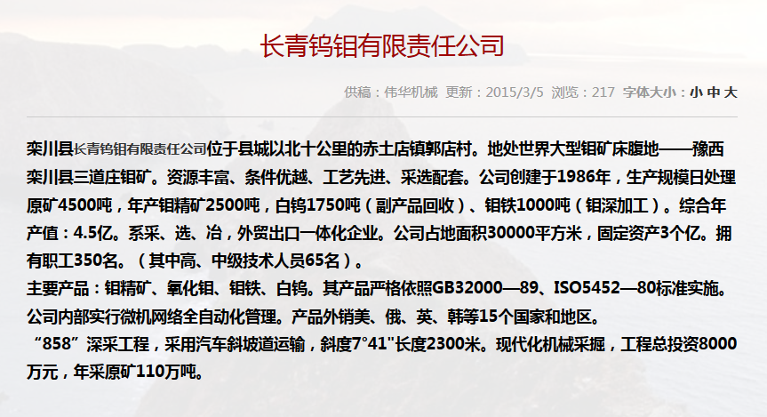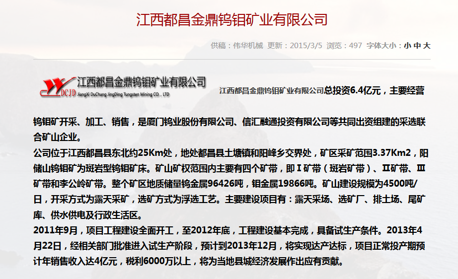 • 合作單位:江西都昌金鼎鎢鉬礦業(yè)有限公司
